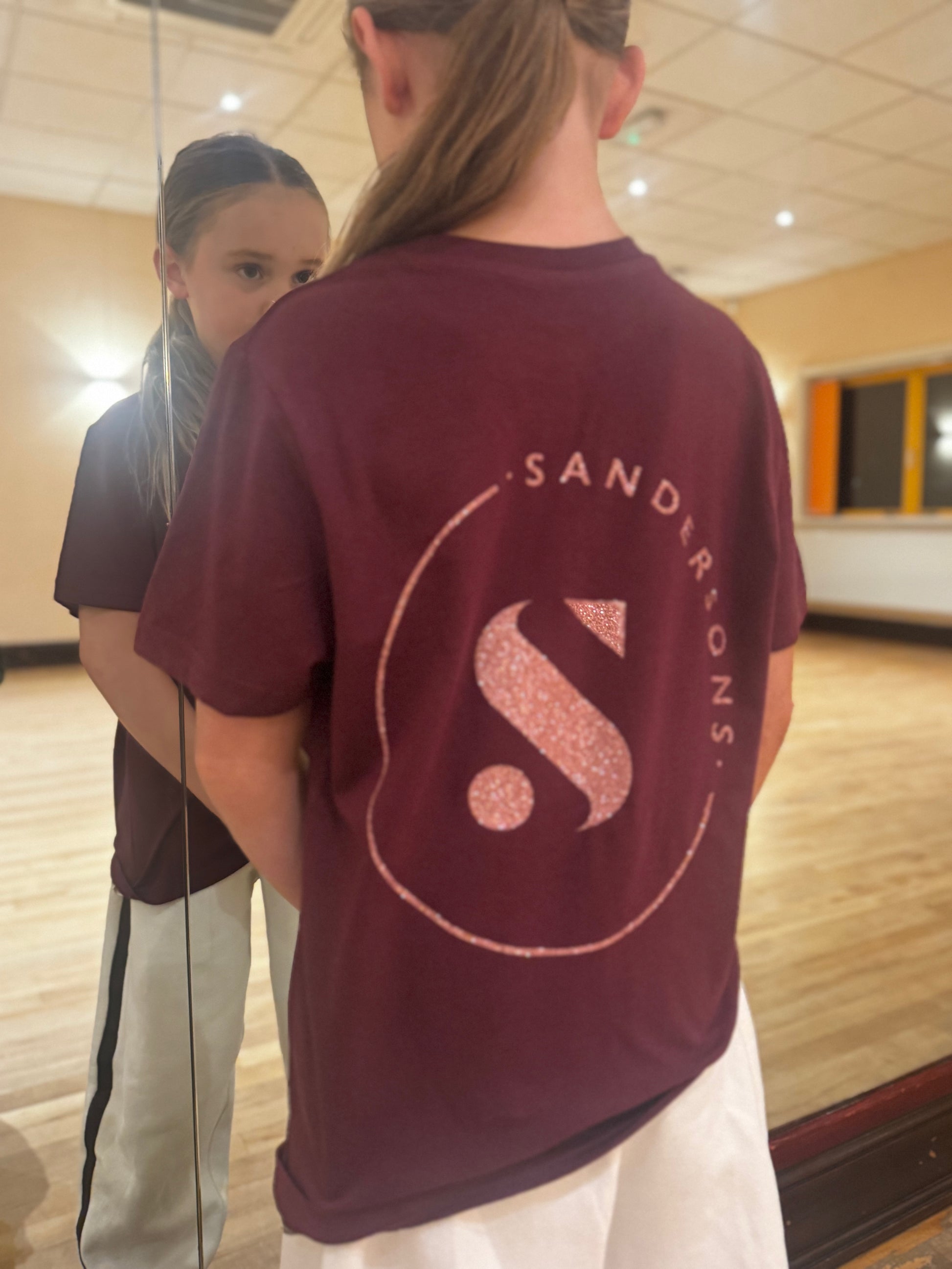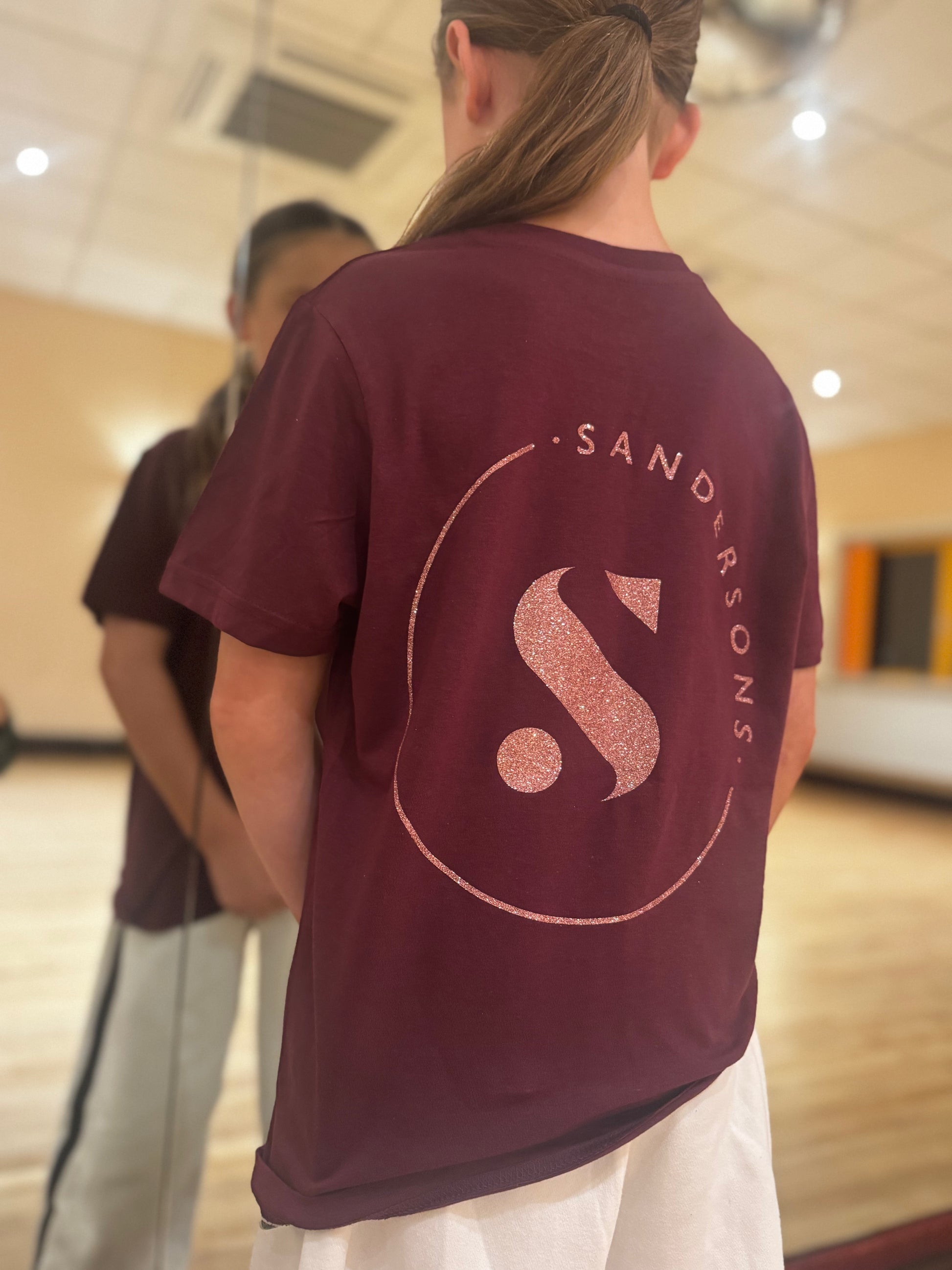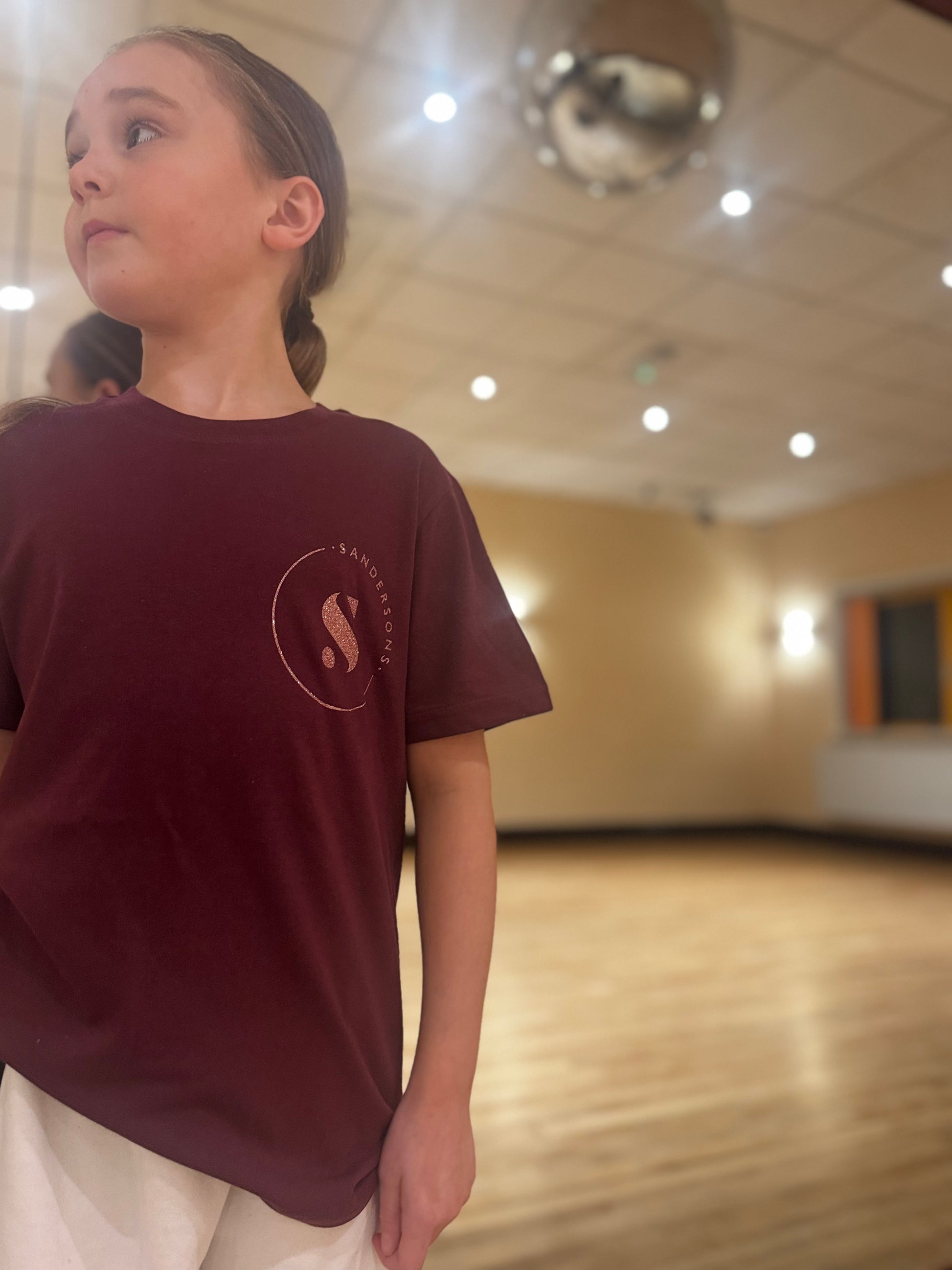 T SHIRT BURGUNDY WITH ROSE GOLD GLITTER- KIDS & ADULT SIZES BLACK